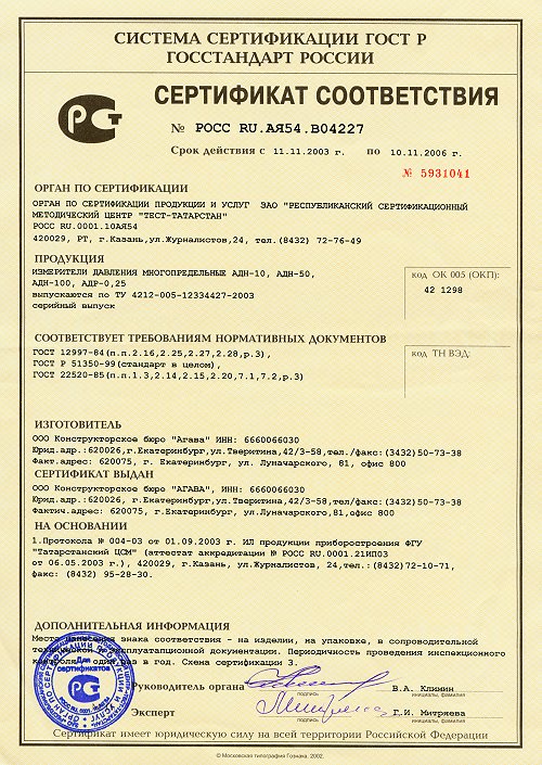 сертификаты соотвествия, средств измерения и разрешения Гостехнадзора на продукцию