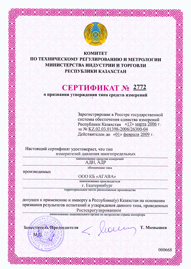 Сертификат об утверждении типа средств измерения (Казахстан)