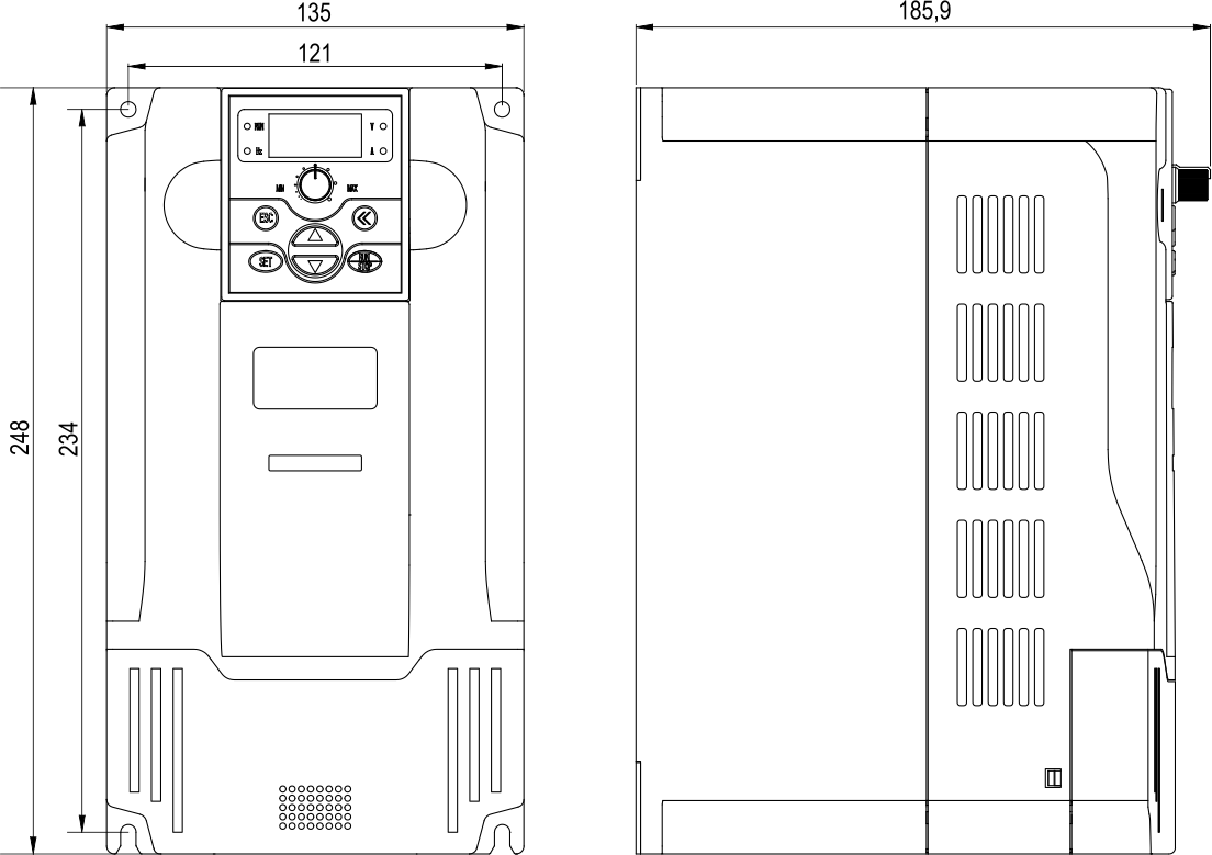 Может использоваться для индикации рабочих параметров ПЧ (напряжение, ток, частота) на внешнем устройстве. |